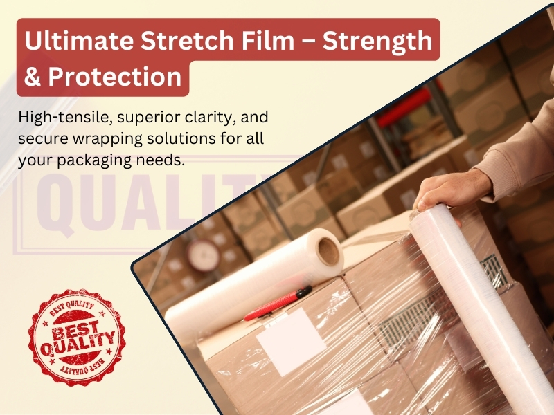 Our premium Stretch Film is crafted for high tensile strength, flexibility, and superior load protection. Designed to be tear-resistant and highly stretchable, it provides secure and efficient packaging for industries including logistics, warehousing, and manufacturing. With excellent clarity and durability, it ensures maximum safety and stability for wrapped goods.